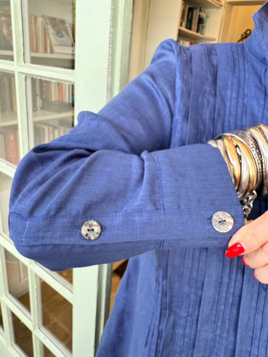 Accordion-Pleated Shirt Collar Cotton and Linen Dress – Timeless Summer Comfort